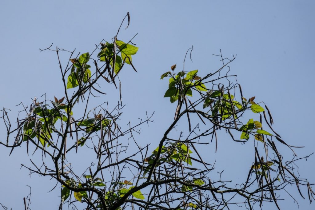 Früchte: lange, bis 35 cm lange und 8 mm dicke röhren- und bohnenförmige, hängende Samenschoten.