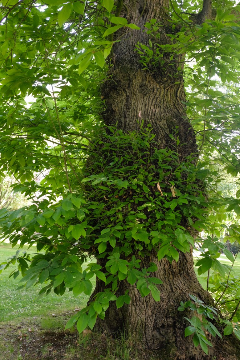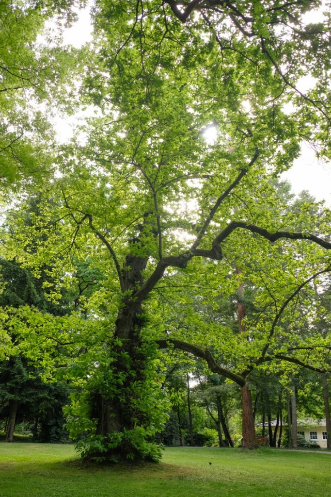 Wuchs: Großer Baum mit kräftigem, drehwüchsigem Stamm und ausladender Krone, bis 35 Meter hoch und 25 Meter breit.