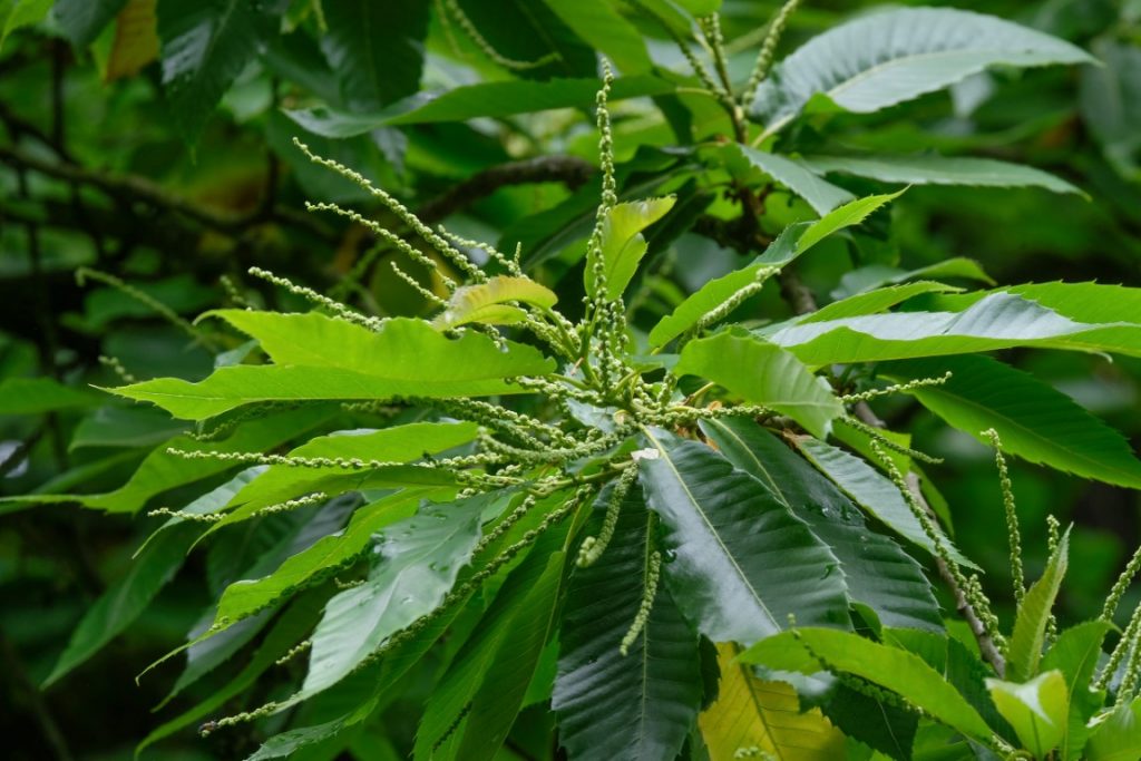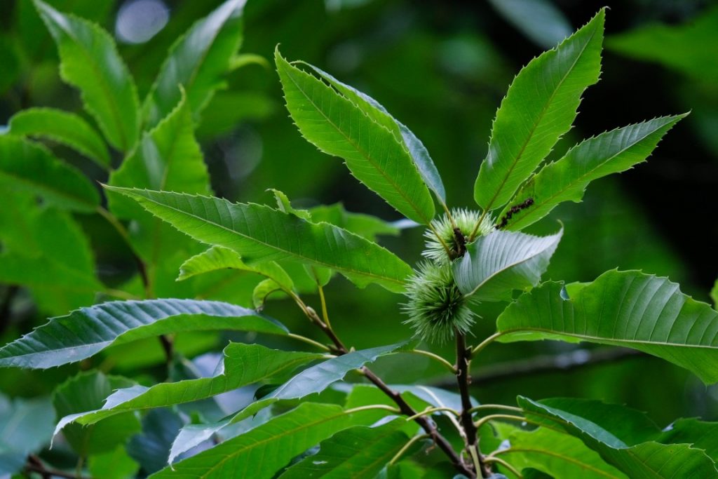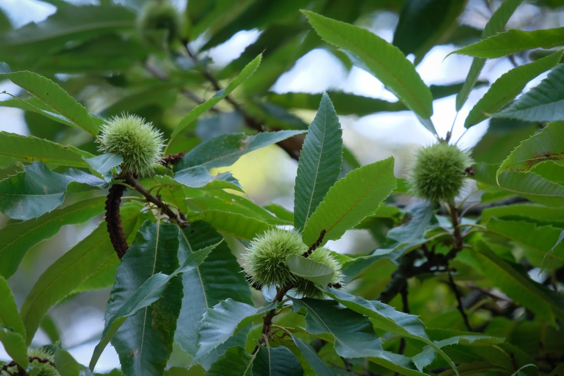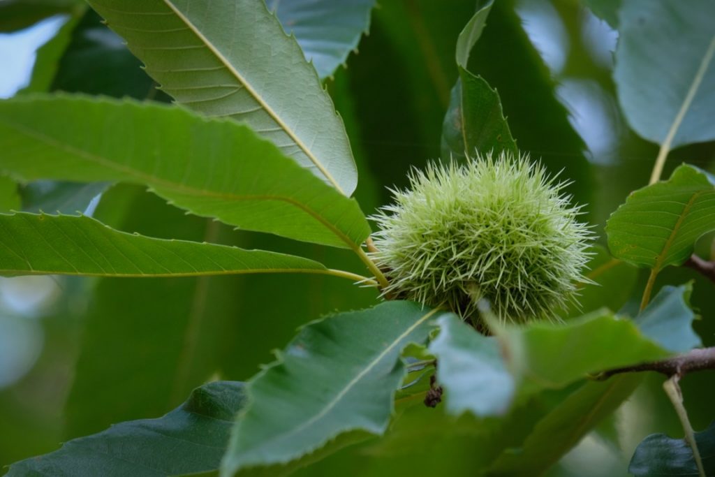 Castanea sativa wird auch Esskastanie und Echte Kastanie genannt.